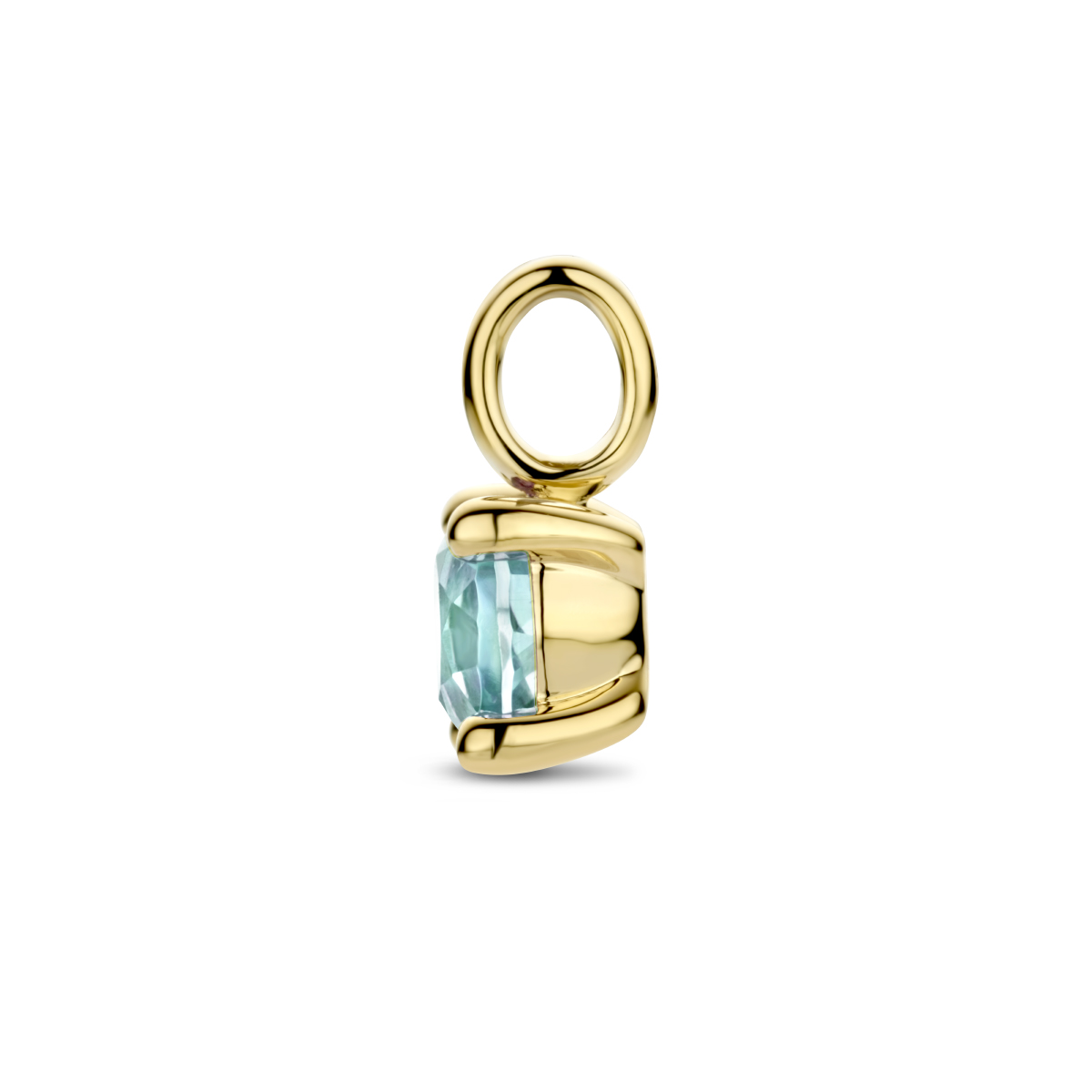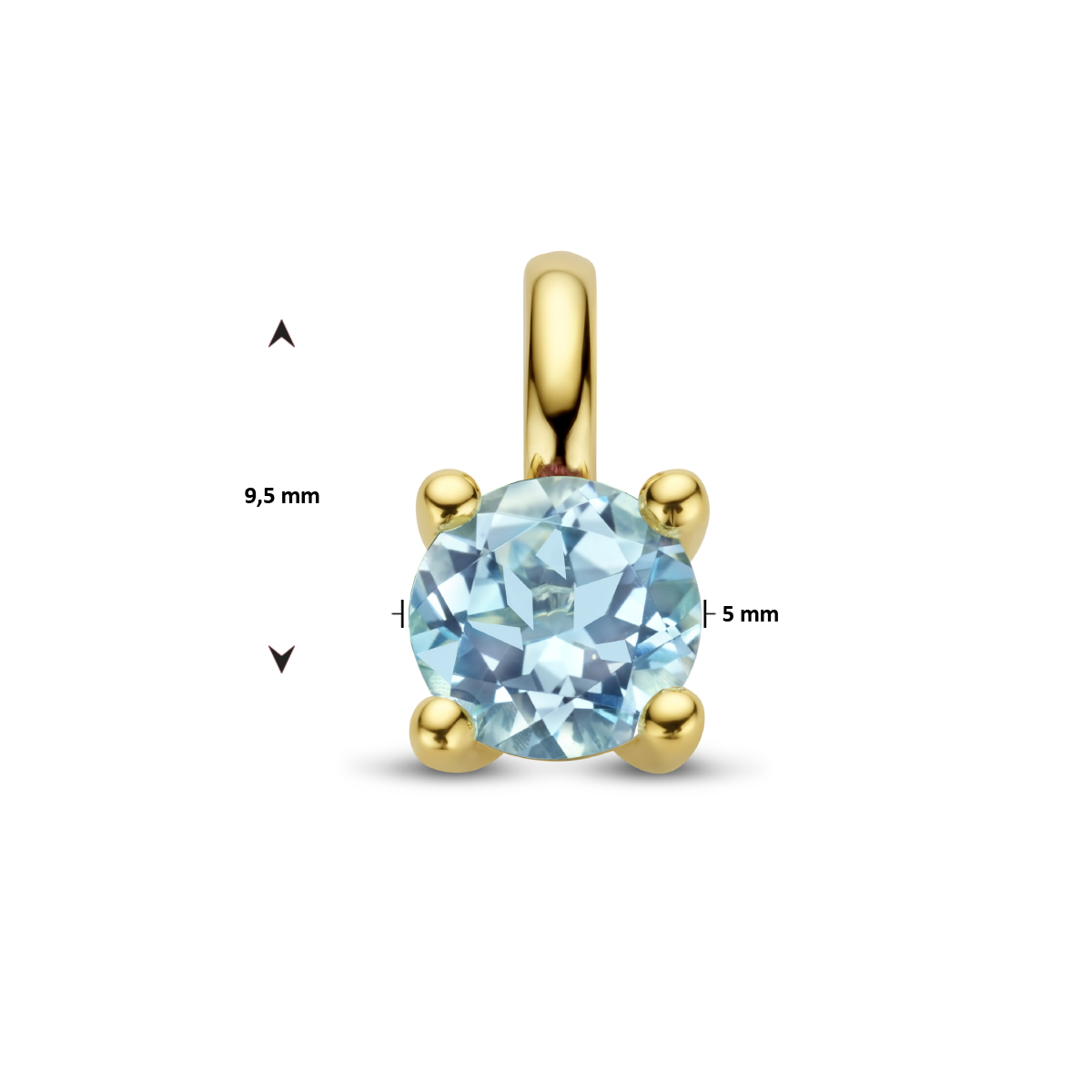 De 14krt Geelgoud hanger met topaas (5mm) biedt elegantie en verfijning. Dit sieraad, modelnummer 4026717, is een schitterende gouden bedel met een blauwe topaas. Met een gewicht van 0,48 gram en glanzende afwerking, is het ideaal om te dragen aan een fijne ketting voor een verfijnde en stijlvolle look.
