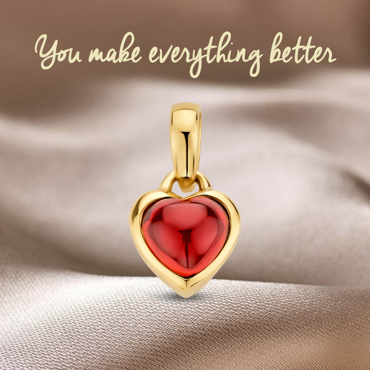 14k Geelgouden hanger uitgevoerd in de vorm van een hart met een granaat steen. De hanger heeft een afmeting van 6x6mm en een totale hoogte van 1.1cm.