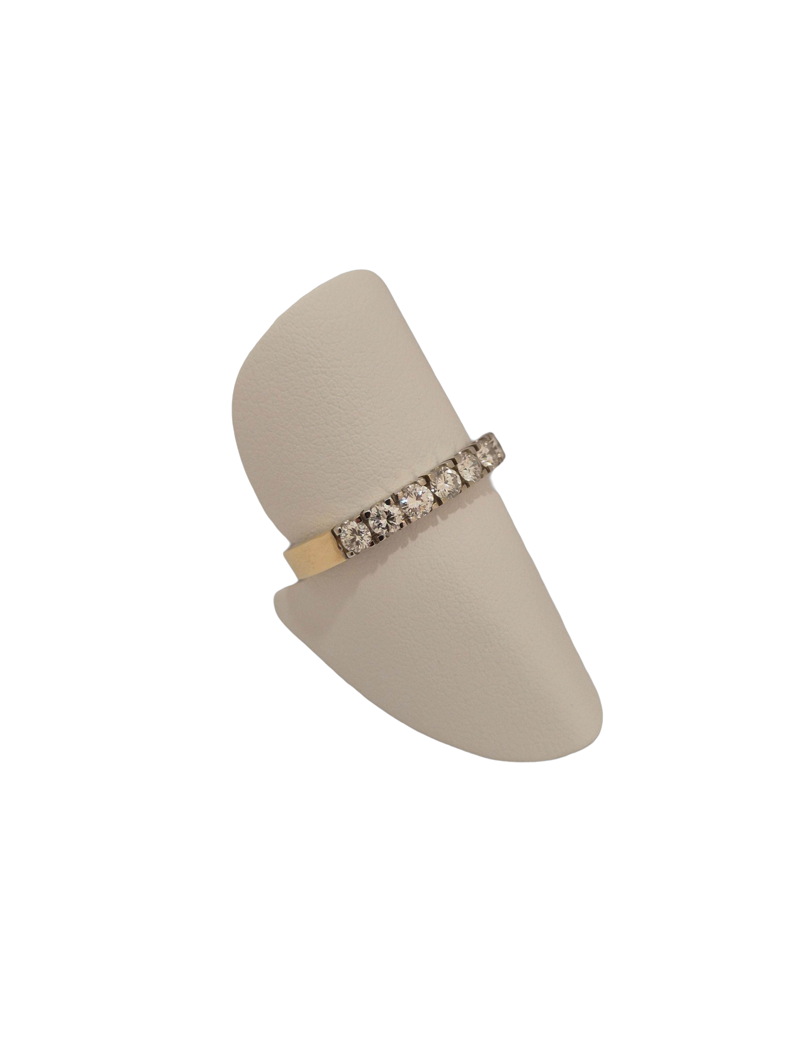 De 14krt. geelgouden alliance ring, heeft 7 briljant geslepen diamanten van elk 0.07ct. Perfect te dragen als een verfijnd statement stuk bij formele gelegenheden of als dagelijkse luxe.