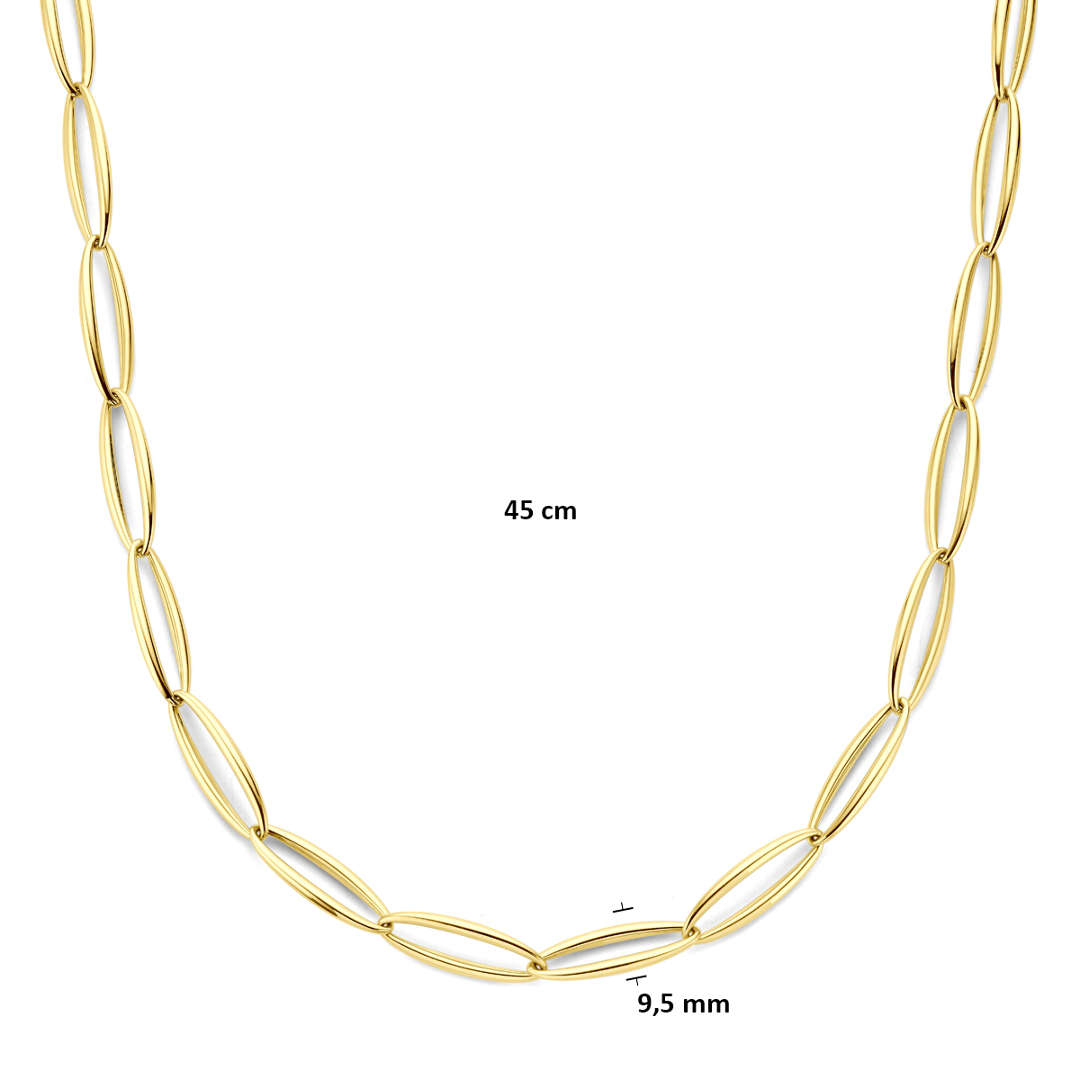 Dit prachtige 14krt. geelgouden collier van een onbekend merk heeft een gewicht van 19,3 gram. Gemaakt van goud, straalt het collier met zijn glans. Met een breedte van 9,5 mm en een lengte van 450 mm is het ideaal te dragen als opvallend sieraad bij elke chique gelegenheid.