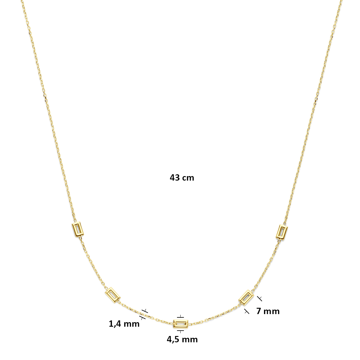 14k Geelgouden collier met een draaglengte van 43cm en een schakelbreedte van 1.4mm. Uitgevoerd met karabijnsluiting.
