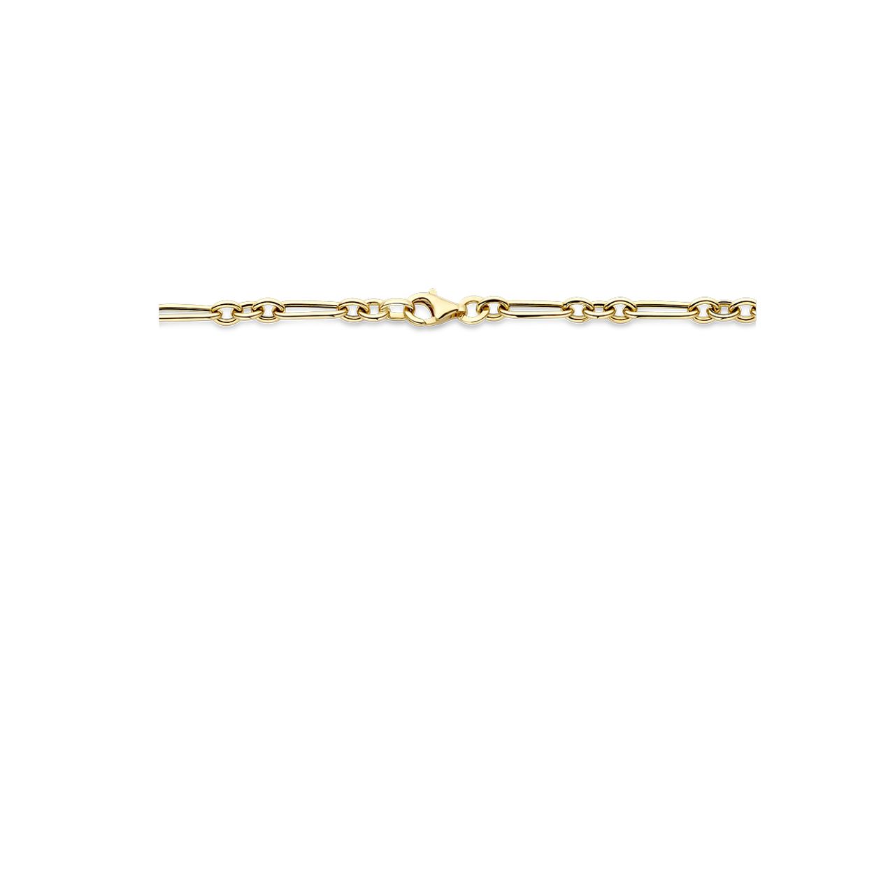 Dit 14krt geelgouden fantasie schakel collier met modelnummer 4028532 is een schitterende halsketting met een breedte van 4,0 mm en een gewicht van 8,55 gram. De ketting glanst prachtig dankzij het goudmateriaal. Draag deze elegante ketting solo of combineer met andere favorieten voor een verfijnde en stijlvolle look. Perfect voor elke gelegenheid.