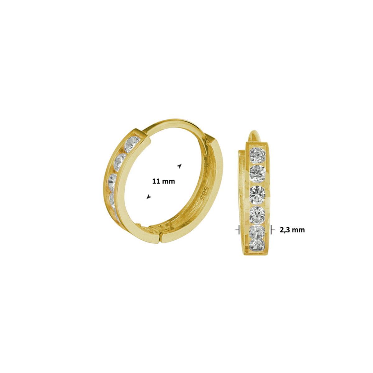 Deze prachtige 14krt. gouden klapoorringen met zirkonia (modelnummer 4022738) zijn een verfijnde toevoeging aan elke sieradencollectie. Met een gewicht van 1.07 gram, glanzend goudkleurig en een diameter van 11 mm, zijn ze perfect voor dagelijks gebruik. Ze zijn nikkelvrij, waardoor ze ook geschikt zijn voor gevoelige oren. Ideaal te dragen bij zowel casual als formele gelegenheden.