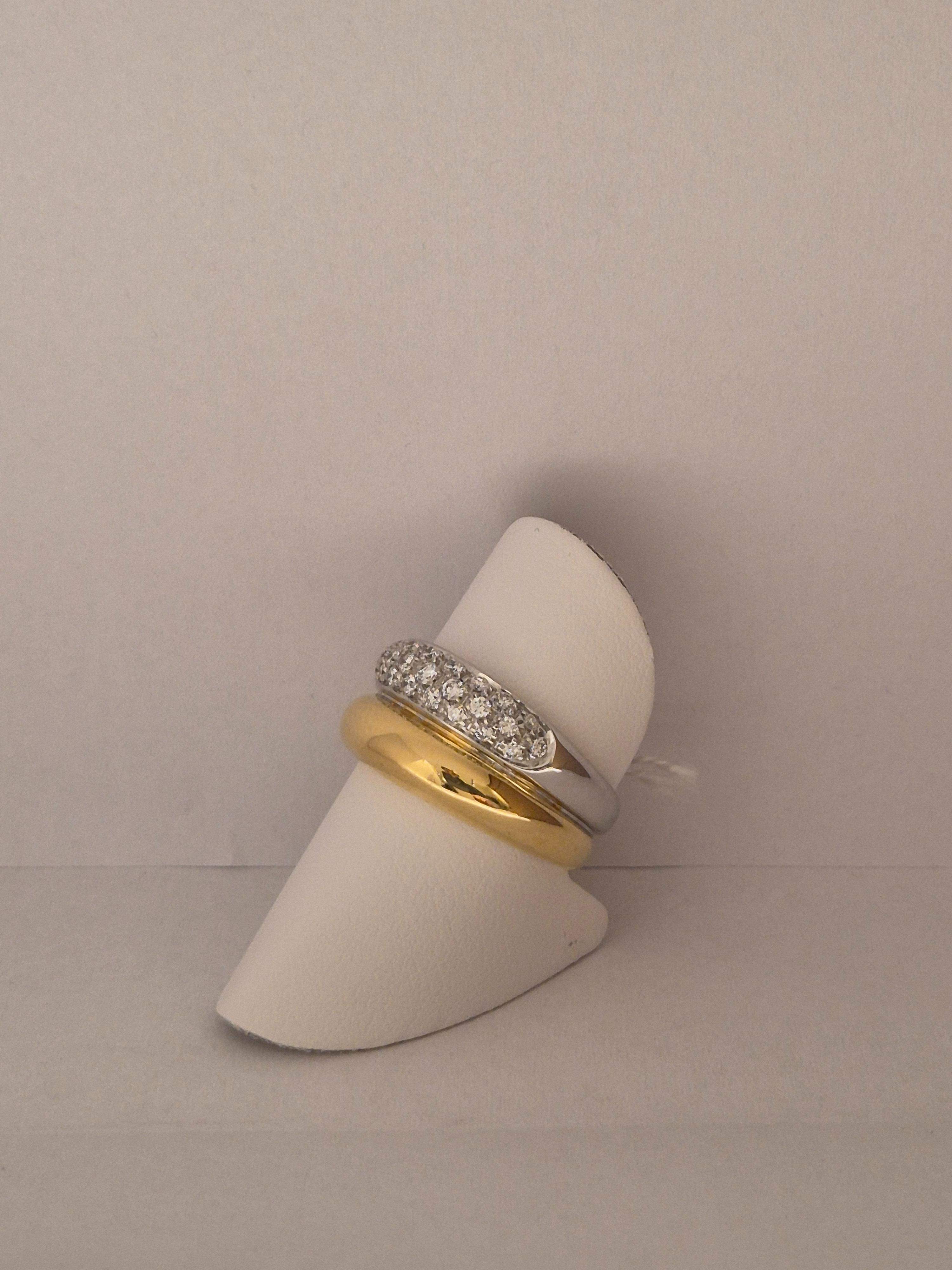 Deze elegante ring is vervaardigd uit 18 karaat geel- en witgoud en is bezet met 25 briljant geslepen diamanten, met een totale caratuur van 0.50ct. De glanzende afwerking en gouden kleur maken het een schitterend sieraad. Perfect om te dragen bij speciale gelegenheden of dagelijks voor een vleugje luxe. Geschikt voor ringmaat 55.