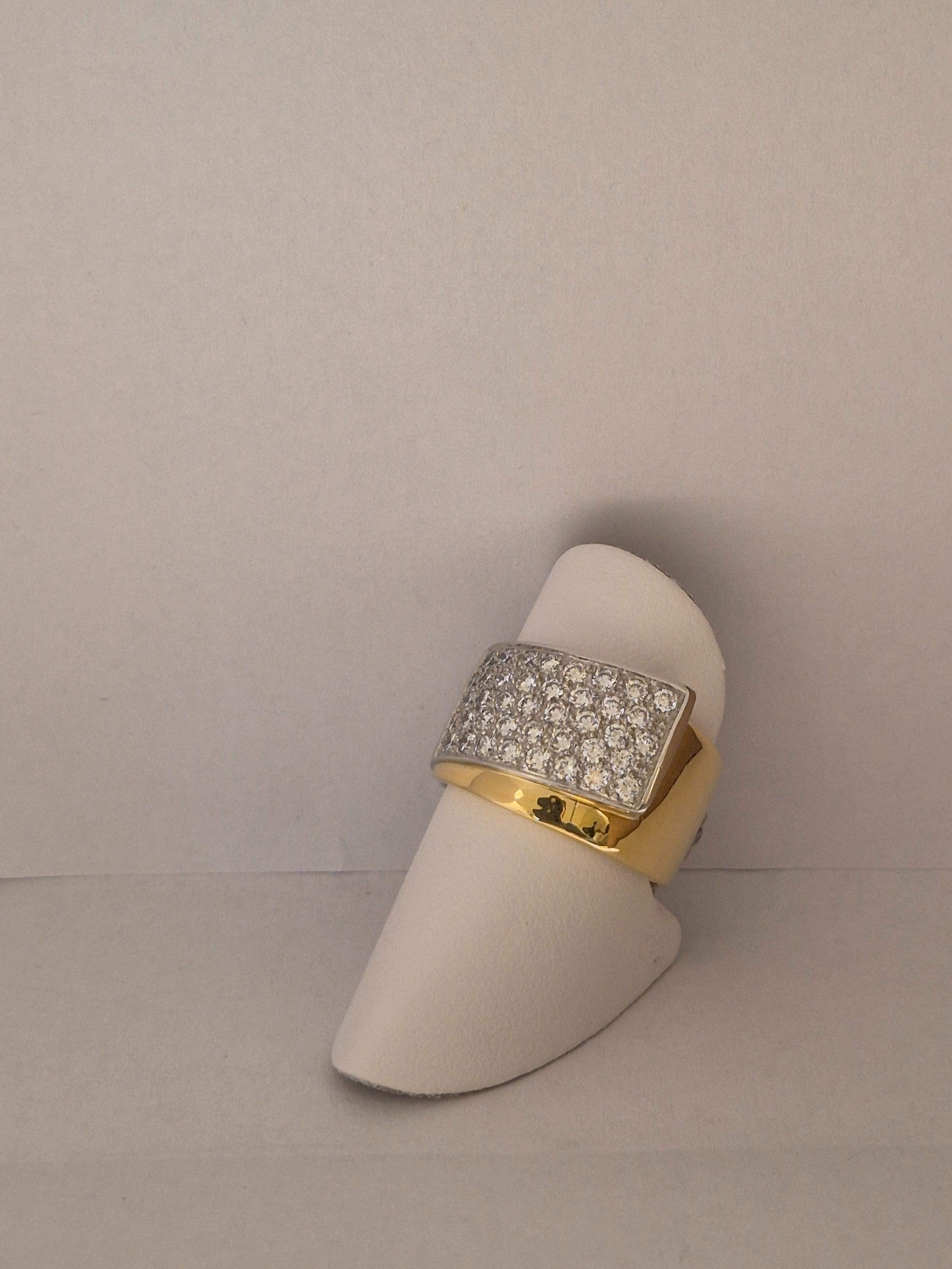 De 18krt. wit/geelgouden slagring, straalt luxe uit met 40 briljant geslepen diamanten van in totaal 1.04ct. Deze  ring heeft maat 54. Perfect te combineren met zowel casual als elegante outfits voor een verfijnde look. Ideal om speciale gelegenheden extra glans te geven.