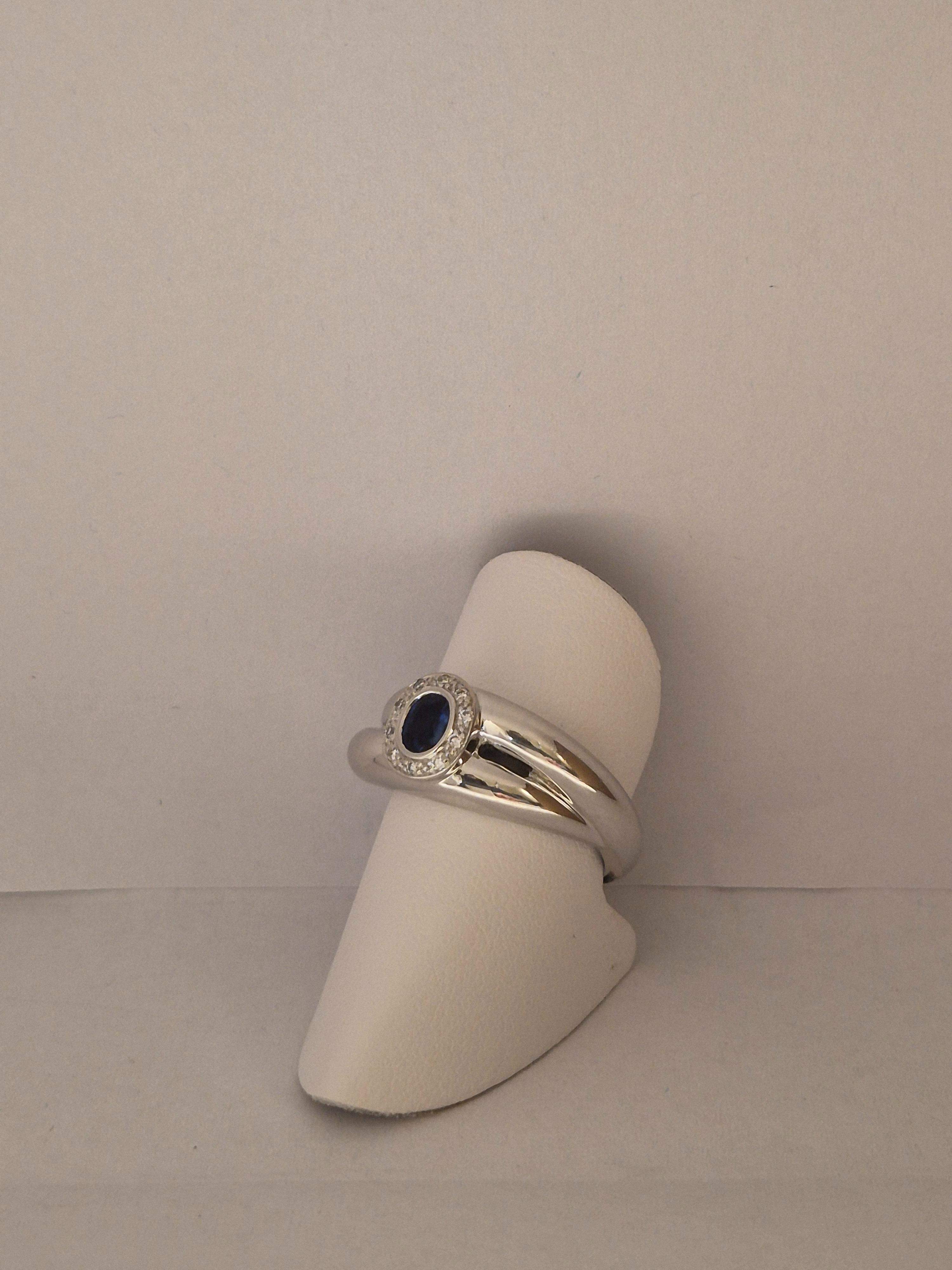 Deze prachtige 18krt. witgouden ring, bevat een 0.55ct saffier en 0.08ct diamant. Perfect als verfijnde toevoeging aan elke sieradencollectie. Draag deze ring op een speciale gelegenheid of maak je dagelijkse look luxueuzer. Ideaal om te dragen op ringmaat 55 voor een elegante en tijdloze uitstraling.