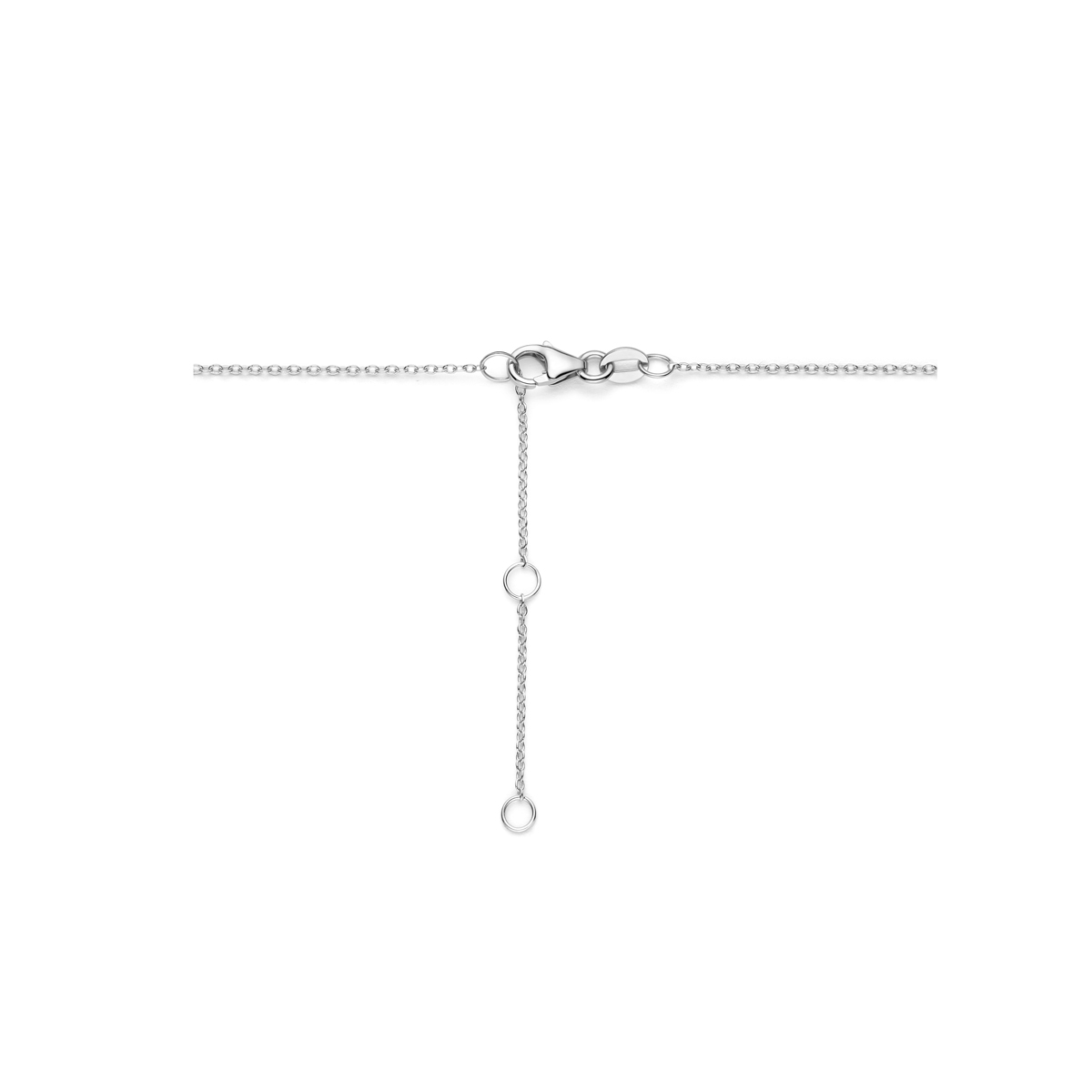 14k Witgouden collier uitgevoerd met diamant. Het collier heeft een draaglengtes van 41, 43 en 45cm. De schakelbreedte is 1,2mm. Uitgevoerd met een karabijnslot. Het totale diamantgewicht is 0.16ct. H/Si