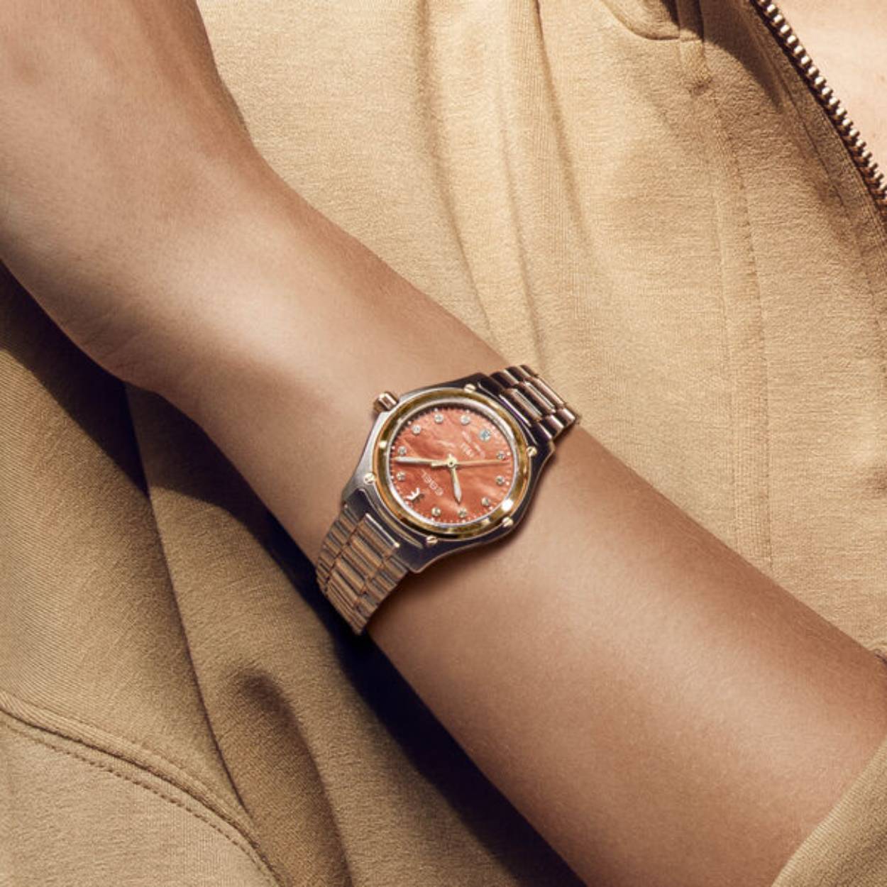 De Ebel 1911 Lady 1216574 is een elegante horloge met een Zwitsers quartz uurwerk en een ronde roestvrijstalen kast. Het heeft een parelmoer wijzerplaat met echte diamanten en een saffierglas. De gouden en zilverkleurige armband maakt het een perfecte keuze voor elke gelegenheid. Draag dit horloge als stijlvol accessoire bij zowel casual als chique outfits.