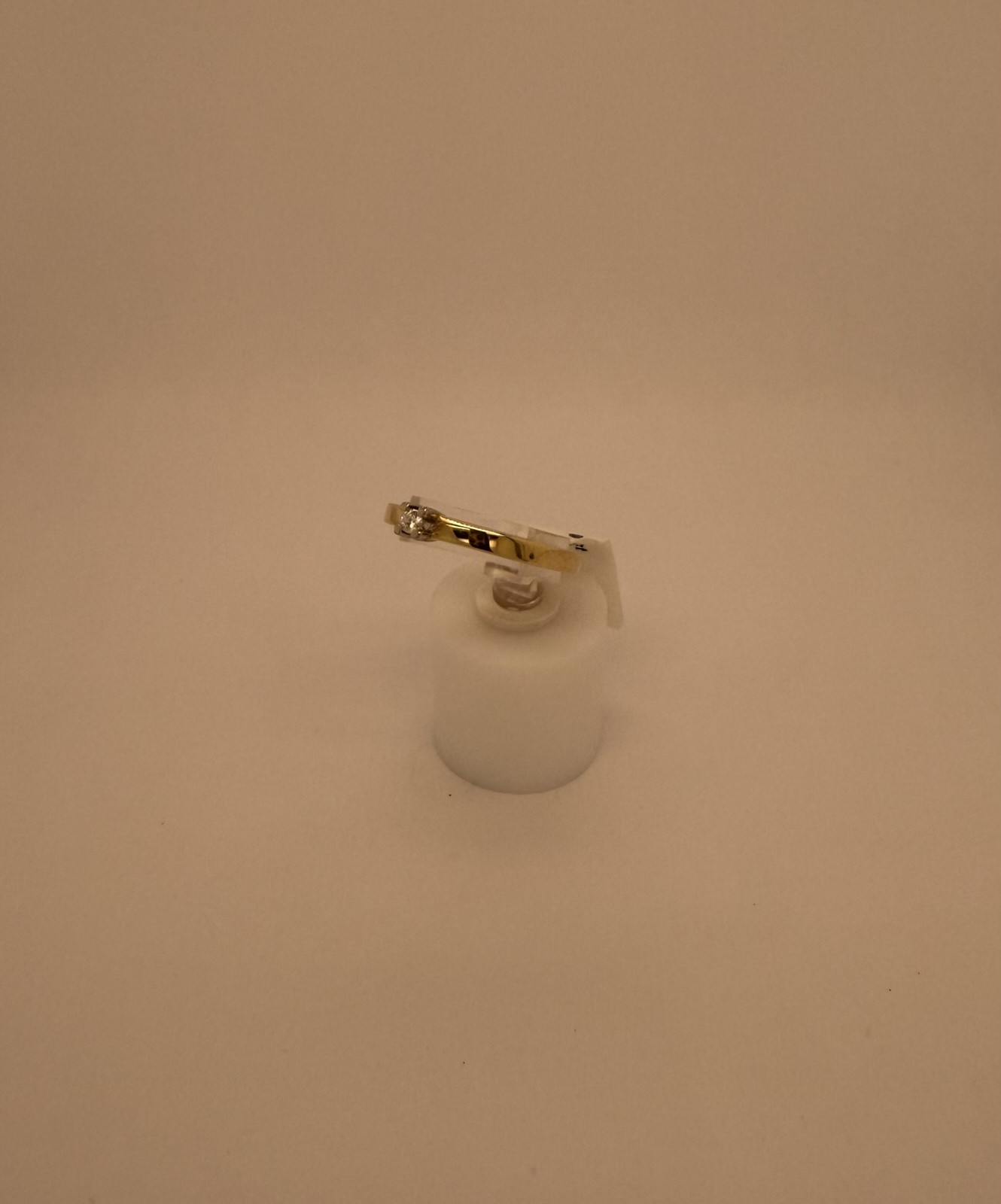 Eclat 14krt geelgouden ring met diamant in witgouden zetting,  is een verfijnd juweel met een briljante diamanten steen van 0.05 karaat. Deze ring straalt elegantie uit en is perfect voor speciale gelegenheden. Draag hem solo als statement piece of combineer met andere ringen voor een trendy gelaagde look.