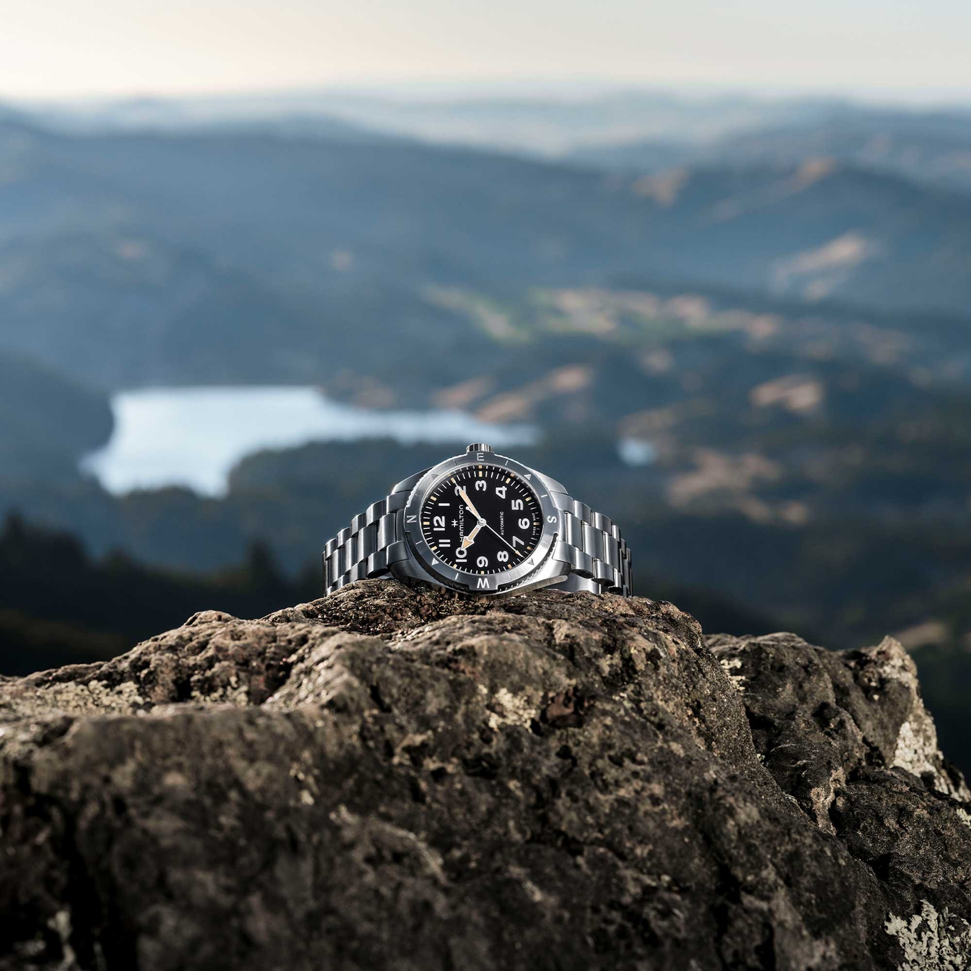 De Hamilton H70315130 Khaki Field Expedition heeft een Zwitsers automatisch uurwerk, een waterbestendigheidsniveau van 10 ATM en een hypoallergene, nikkelvrije constructie. De horlogekast is rond, zilverkleurig en gemaakt van roestvrij staal met saffierglas. Het analoge display toont Arabische cijfers. Draag het als een stijlvol polshorloge voor zowel formele als casual gelegenheden.