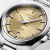 De Longines Conquest L37204626 is een elegante polshorloge met een roestvrijstalen kast en een zilverkleurige band. Het heeft een analoge tijdsaanduiding met gouden wijzerplaat en automatische datumfunctie. Nikkelvrij en voorzien van krasbestendig saffierglas. Perfect voor een stijlvolle, formele of zakelijke gelegenheid. Draag met formele kleding voor de beste uitstraling.