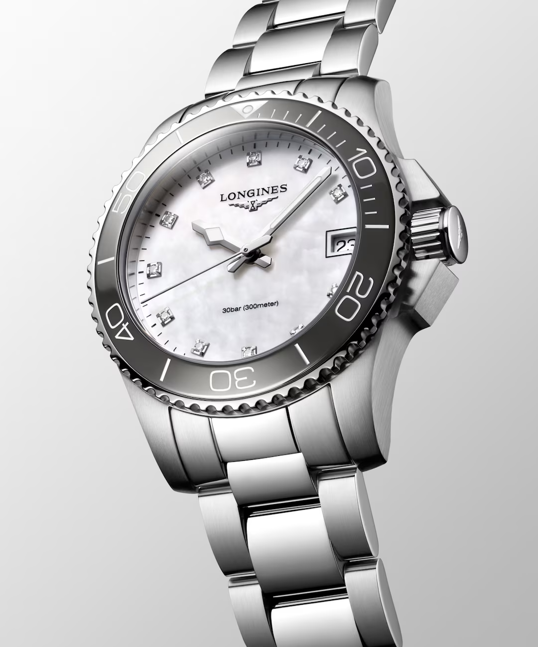 De Longines Hydro Conquest L33704876 is een elegante Zwitserse polshorloge met een analoge weergeving en quartz beweging. Het heeft een roestvrijstalen kast en band, beide in zilverkleur, en een witte wijzerplaat met echte diamanten index. Waterdicht tot 30 meter en antiallergisch, ideaal voor dagelijks gebruik. Beste te dragen bij formele of zakelijke outfits.