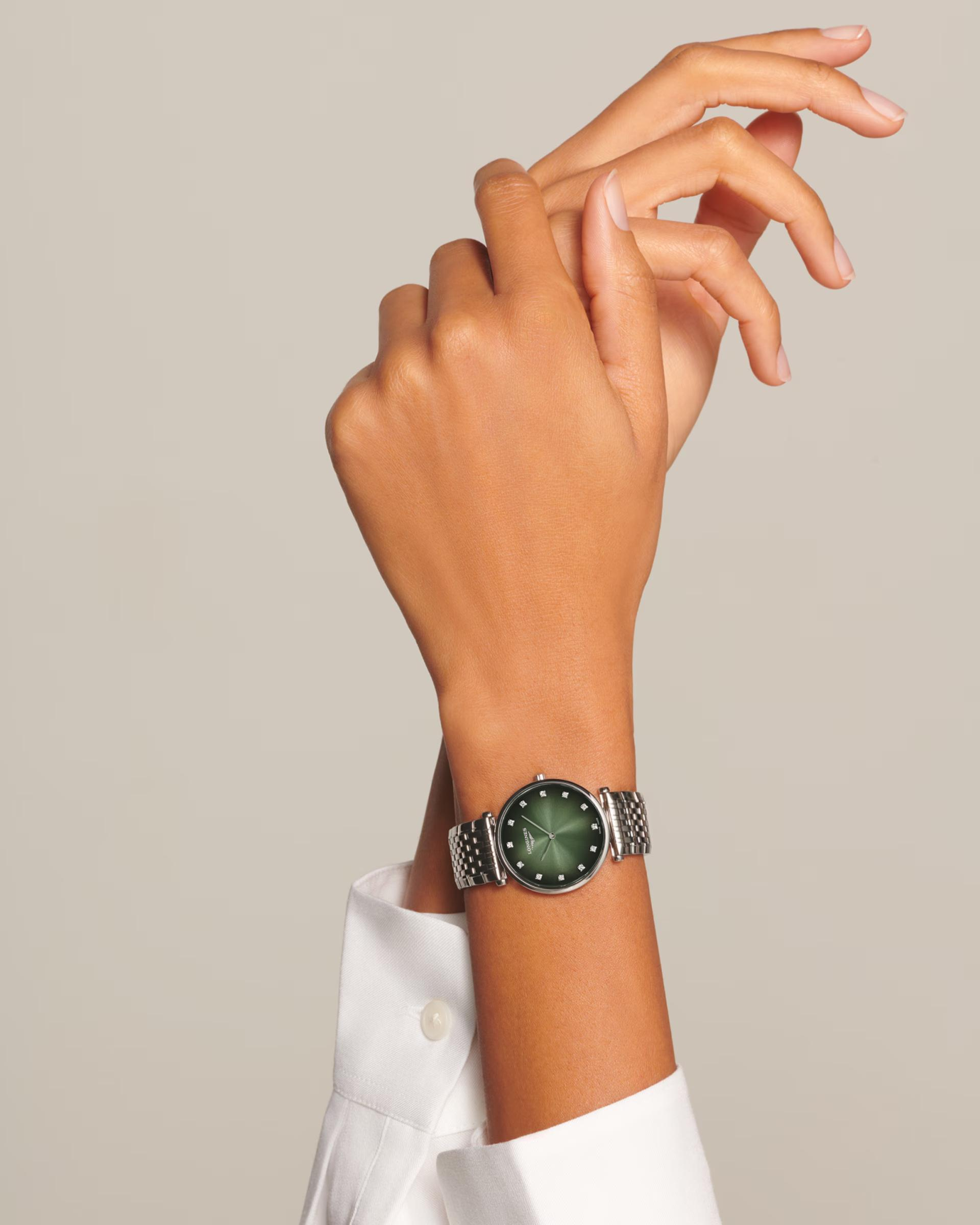 De Longines La Grande Classique L45124926 is een verfijnd horloge met Zwitsers quartz uurwerk. Het horloge heeft een rond, zilverkleurig edelstalen kast met groene wijzerplaat en echte diamanten indexen. Waterbestendig tot 3 ATM en antiallergisch. Perfect voor formele gelegenheden. Draag het om de pols met een elegante zilverkleurige edelstalen band voor een tijdloze uitstraling.