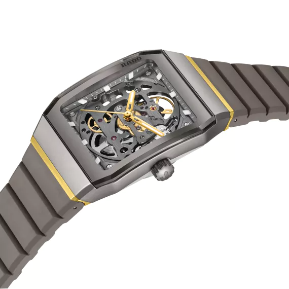 De Rado Anatom Automatic Skeleton R10206109 is een stijlvol horloge met een keramische rechthoekige kast en grijze siliconen band. Voorzien van een analoge automatische beweging, saffierglas en Zwitserse precisie. Perfect voor dagelijks gebruik. Draag het om de pols voor een elegante, moderne look.
