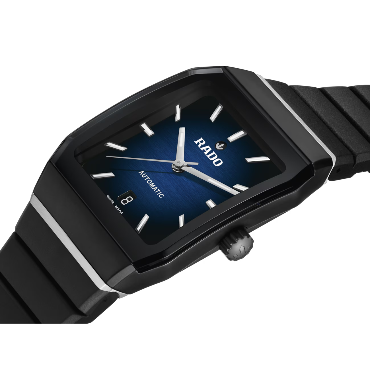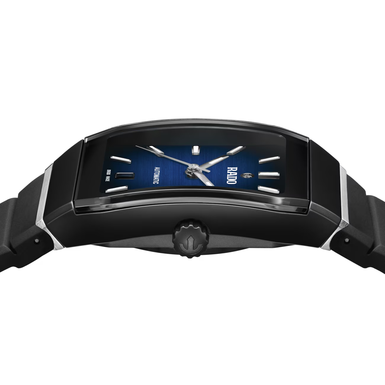 De Rado Anatom R10202209 is een luxe polshorloge met een zwarte keramische kast en blauwe wijzerplaat. Het heeft automatische Zwitserse beweging en is waterdicht tot niveau 5. Met een saffierglas, een siliconen band en een analoge aanduiding is dit stijlvolle horloge perfect voor zakelijke en casual gelegenheden. Draag het om uw pols voor elke chique look.