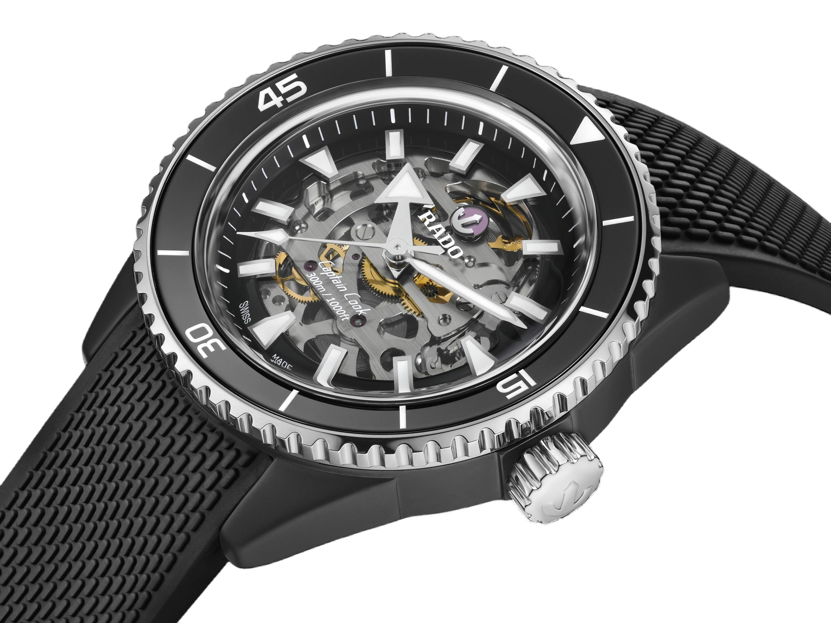 De Rado Captain Cook R32129168 is een stijlvolle polshorloge met een keramische kast en een zwarte wijzerplaat. De horloge heeft een automatische Zwitserse beweging, is hypoallergeen en waterbestendig tot 30 meter. Perfect voor dagelijks gebruik. Draag het met zowel casual als formele outfits voor een moderne uitstraling.