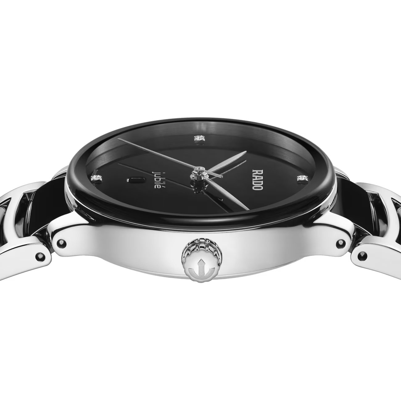 De Rado Centrix Diamonds R30026712 is een verfijnd horloge met Zwitserse quartz uurwerk, een ronde keramische kast van 30,5 mm en krasbestendig saffierglas. De zwarte wijzerplaat heeft echte diamanten uurmarkeringen. Met een zwartgekleurde keramische schakelband en een waterbestendigheid tot 5 ATM, is dit elegante horloge perfect voor zowel formele als dagelijkse gelegenheden. Draag het stijlvol om uw pols.