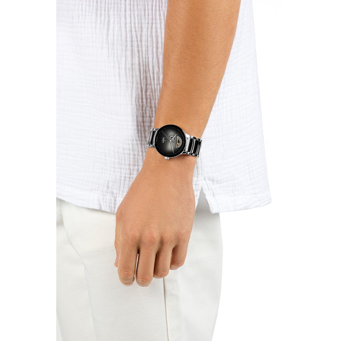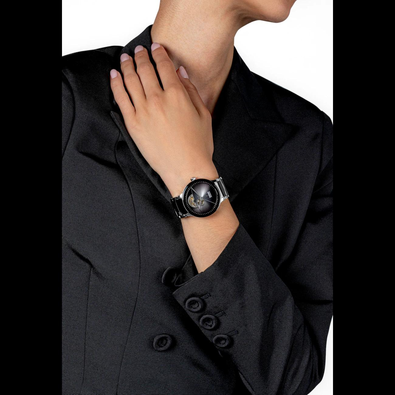 De Rado Centrix Open Heart R30012152 is een verfijnde polshorloge met een ronde keramische kast, zwarte keramische band en saffierglas. Het heeft automatische Zwitserse bewegingen, is 50 meter waterbestendig en heeft een analoge wijzerplaat met strepen. Draag deze elegante horloge dagelijks of bij speciale gelegenheden voor een stijlvolle uitstraling. Perfect voor de moderne horlogeliefhebber.