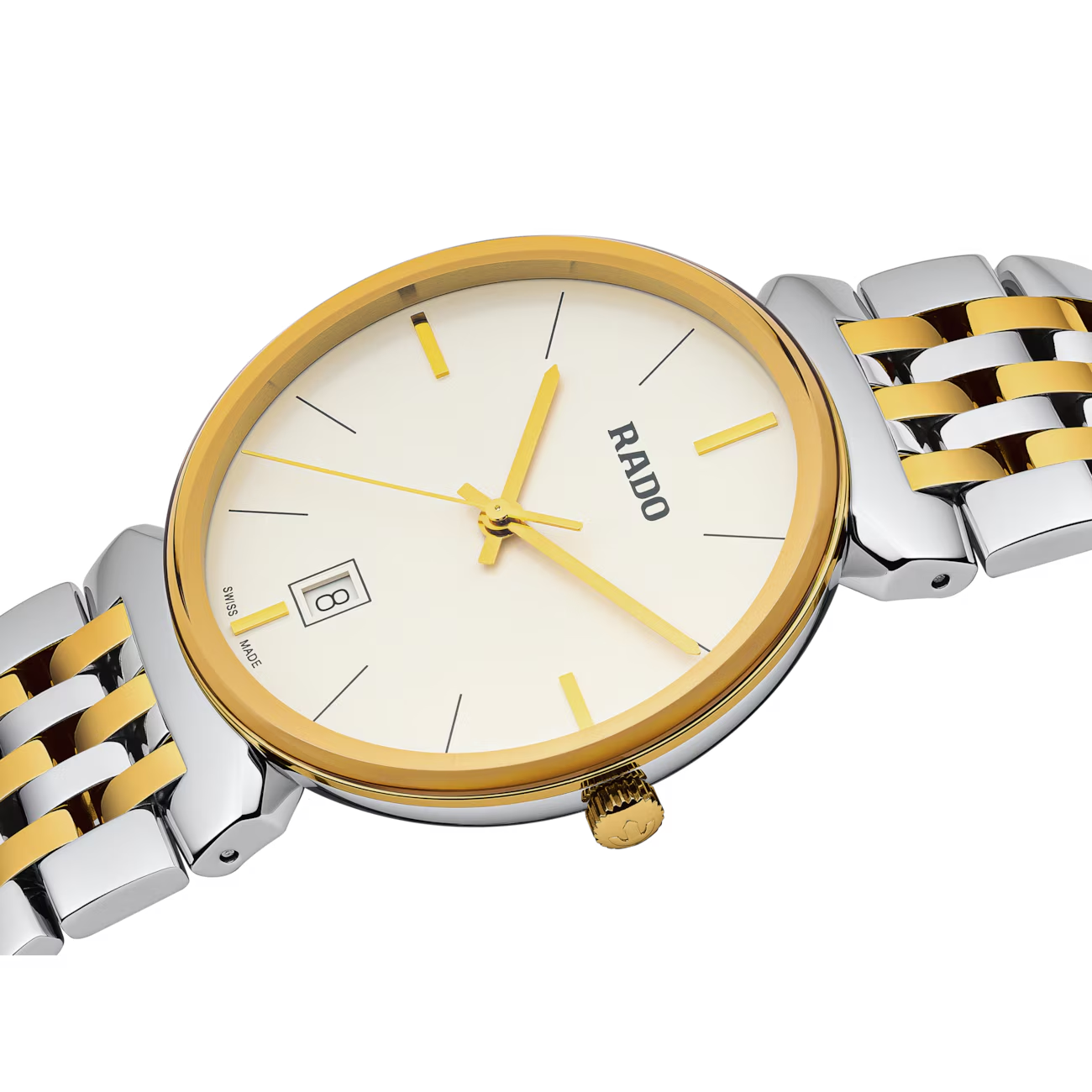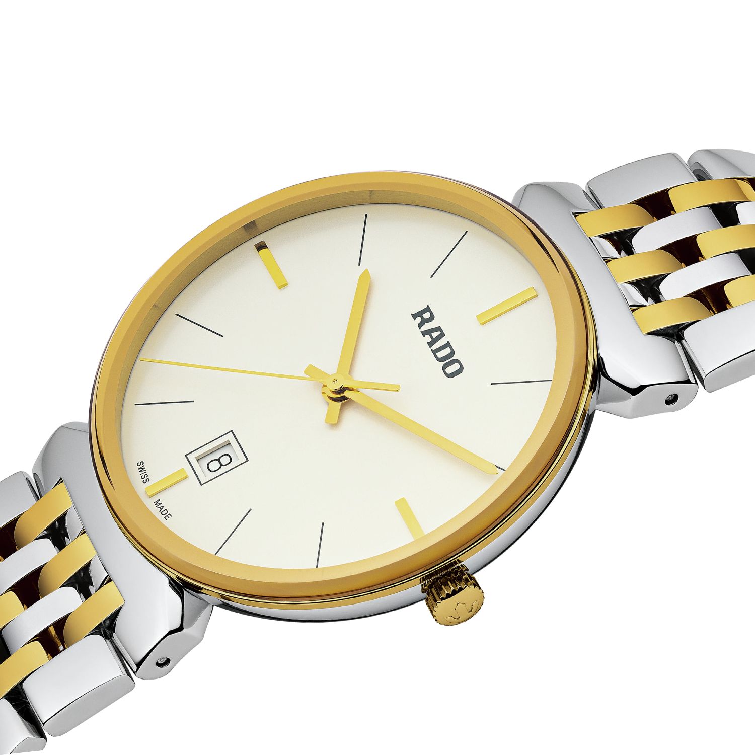 De Rado Florence R48912023 horloge is een elegant polshorloge met Zwitserse quartz-beweging, datumfunctie en analoge aanduiding. Het heeft een ronde roestvrijstalen kast met saffierglas en een goud-zilver kleurige afwerking. Het nikkelvrije ontwerp is anti-allergisch, waterbestendig tot 5 ATM, en ideaal voor dagelijks gebruik. Draag het tijdens formele gelegenheden voor een stijlvolle uitstraling.