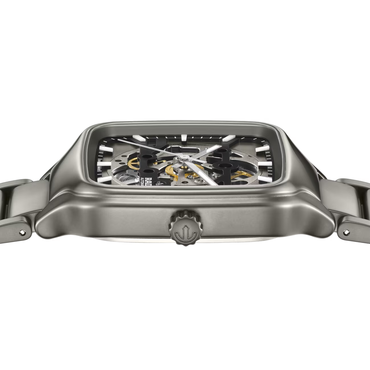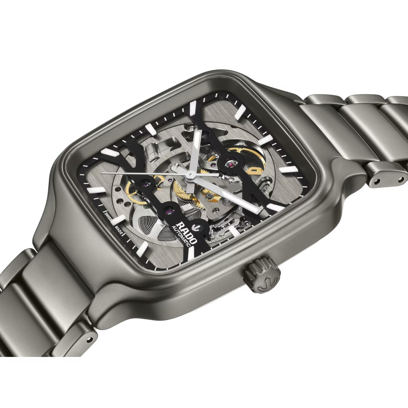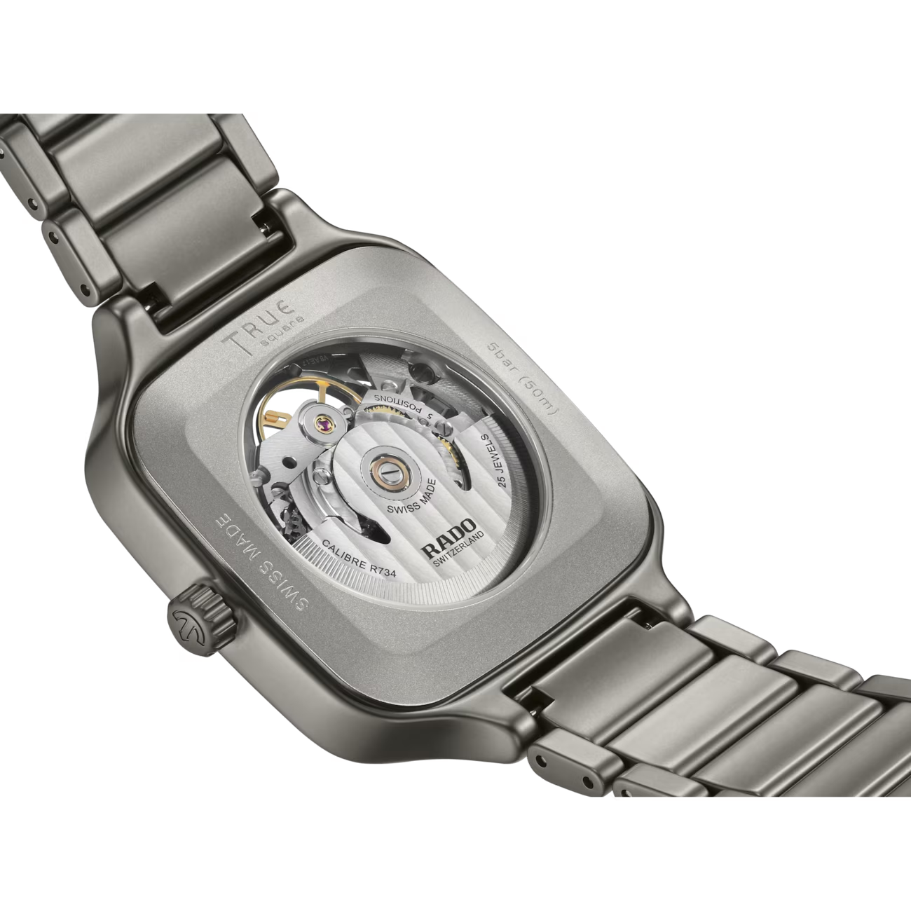 De Rado True Square Automatic Skeleton R27196152 is een elegante en moderne horloge met een vierkante keramische kast, grijze keramische band en automatische Zwitserse beweging. Ideaal voor dagelijks gebruik dankzij de krasbestendige saffierglas en waterbestendigheid tot 5 bar. Draag hem casual of zakelijk voor een verfijnde look.