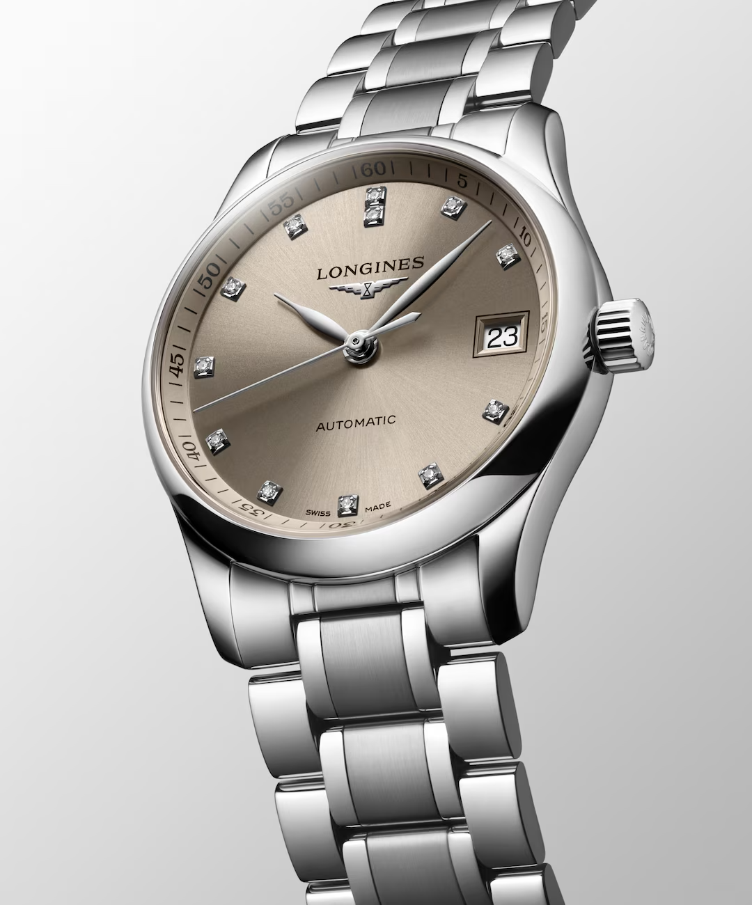 De Longines Master Collection L23574076 heeft prachtige functies zoals een Zwitsers automatisch uurwerk, een zilvergekleurde roestvrijstalen kast met saffierglas, en een beige wijzerplaat met echte diamanten. Dit waterdichte polshorloge is ideaal voor dagelijks gebruik en speciale gelegenheden. Draag het om elegantie toe te voegen aan elke outfit.