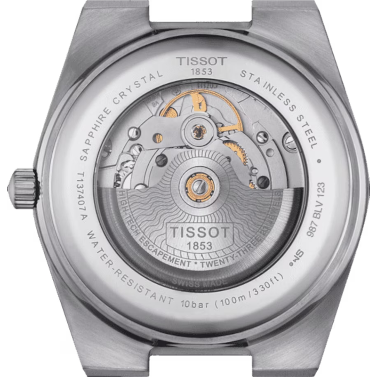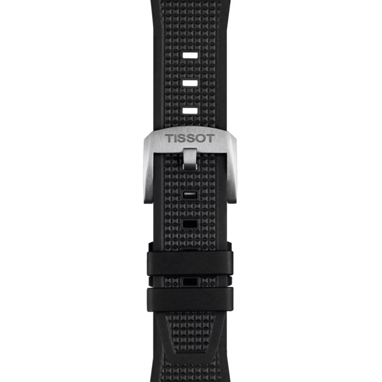 Dit Tissot PRX horloge heeft een stijlvolle zilveren roestvrijstalen kast, met een zwarte wijzerplaat en datumaanduiding, en rubberen band. De unieke octagonale vorm van de kast geeft het horloge een moderne uitstraling. Draag het bij formele en informele gelegenheden om je outfit compleet te maken. Het horloge is waterbestendig tot 100 meter diepte en heeft een elegante uitstraling. Perfect voor elke gelegenheid!