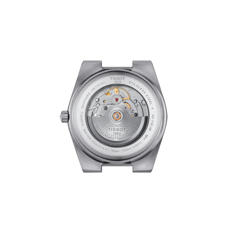 De Tissot PRX T1374171105100 is een stijlvolle polshorloge met een roestvrijstalen kast en band. Het heeft een zwart analoog wijzerplaat met streepindexen en saffierglas. De horloge is waterdicht tot 10 ATM en nikkelvrij. De automatische Zwitserse uurwerk maakt het perfect voor dagelijks gebruik. Draag het met formele of casual outfits voor een tijdloze uitstraling.