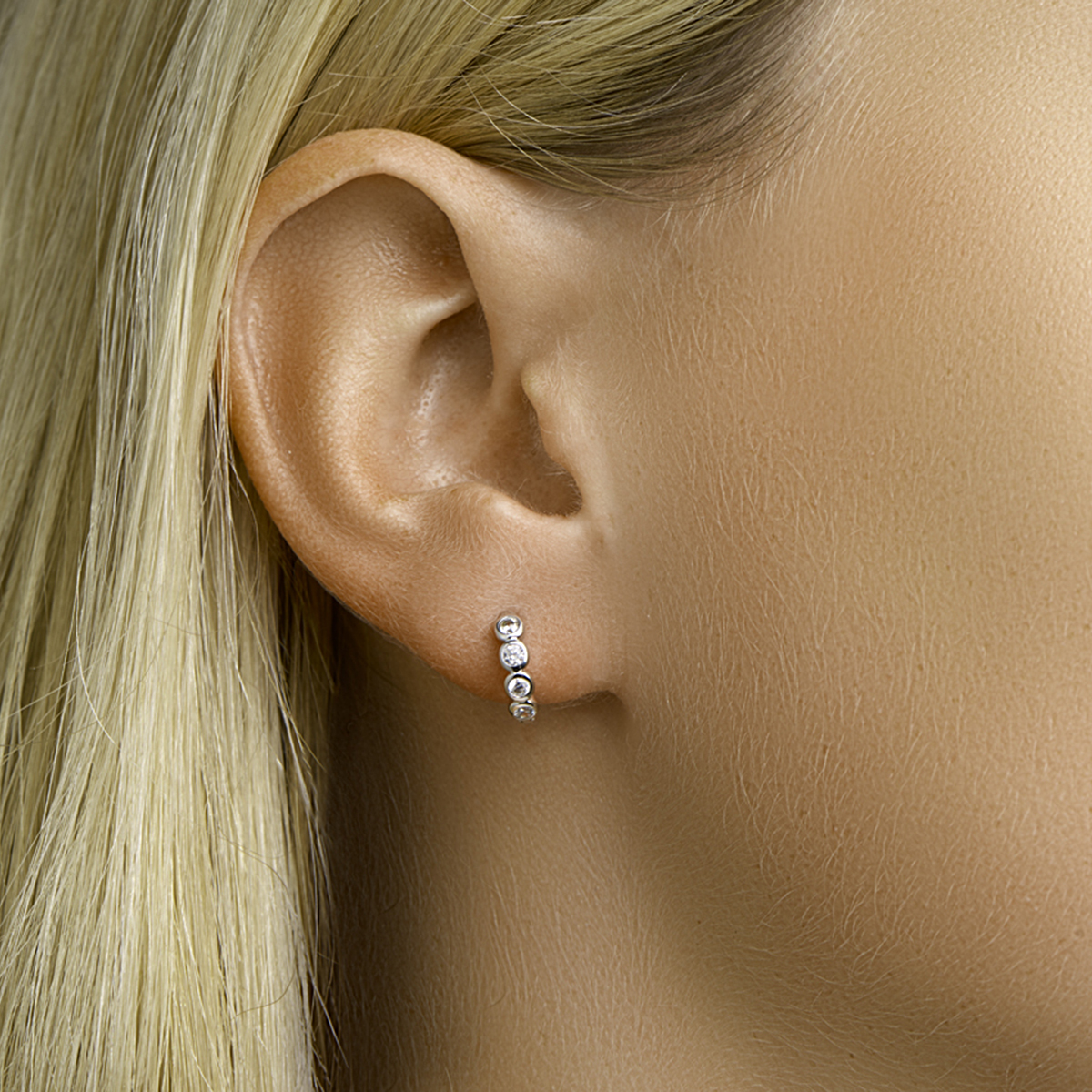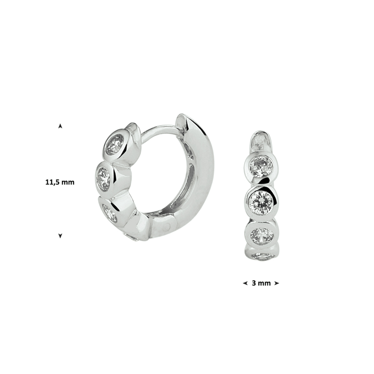 Deze zilveren oorringen, modelnummer 1332688, zijn gemaakt van gerhodineerd 925 sterling zilver en zijn bezet met fonkelende zirkonia's. Met een breedte van 3 mm en een diameter van 11,5 mm stralen ze elegantie uit. Met een gewicht van slechts 1,66 gram zijn ze licht en comfortabel te dragen. Perfect voor zowel dagelijkse als feestelijke gelegenheden!